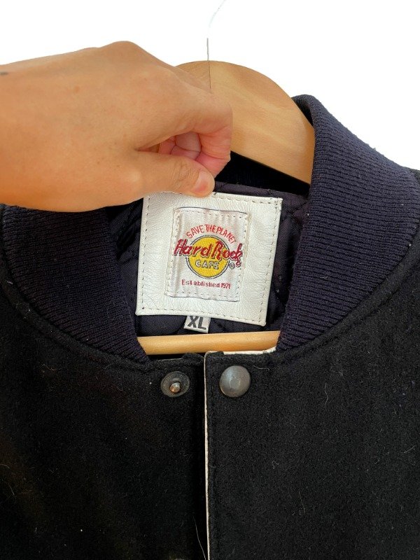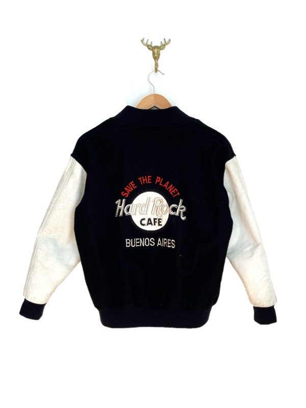 Composición: Lana + cuero . Bomber Hard Rock Cafe de lana con mangas en cuero blanco ,esta impecable y es de colección